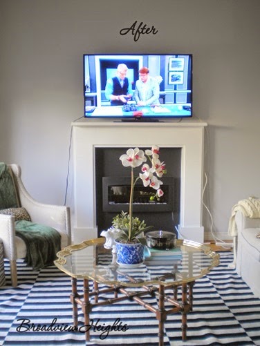 I won the 55” smart tv from work. It will eventually mounted properly, but for now sits on the mantle. The new to me Ikea Stockholm rug also helps to enliven the space.
